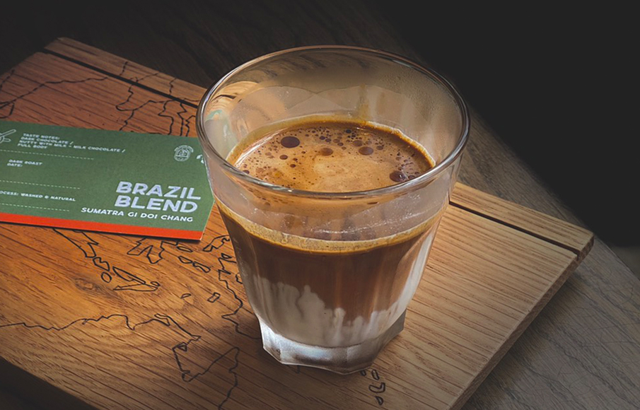 และอีกหนึ่งเมนูที่มาที่ร้านนี้แล้วต้องลองเลยก็คือ กาแฟนม Dirty (150 บาท) ตัวนี้มีความโดดเด่นที่วิธีการทำ โดยการนำเอาน้ำมันกาแฟสกัดจากเมล็ดกาแฟ Brazil Blend คั่วละเอียด และคัดเอาเฉพาะส่วนของน้ำมันบริเวณผิวหน้าของกาแฟ นำมาเทลงบนนมสดแช่เย็นสูตรพิเศษของทางร้าน ซึ่งบ่งบอกถึงความพิถีพิถันและใส่ใจมากๆ โดยจะมีราคาเริ่มต้นที่ 145-800 บาทขึ้นอยู่กับเราจะเลือกวิธีการชงแบบใดด้วย