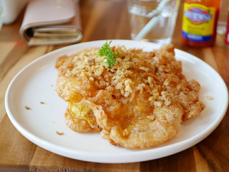 และยังมีอีกหนึ่งเมนูก็คือ ข้าวไข่เจียวกากหมู (75 บาท) มาพร้อมกับตัวไข่เจียวความหนากำลังดี กรอบนอกนุ่มใน โรยหน้าด้วยกากหมู เค็มๆ มันๆ กินเข้ากันกับไข่เจียวและข้าวสวยร้อนๆ อร่อยจนพุงกาง